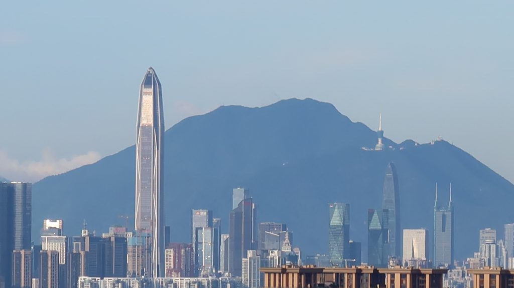 今天天气很好,能见度高,在南山上可以看到地王大厦